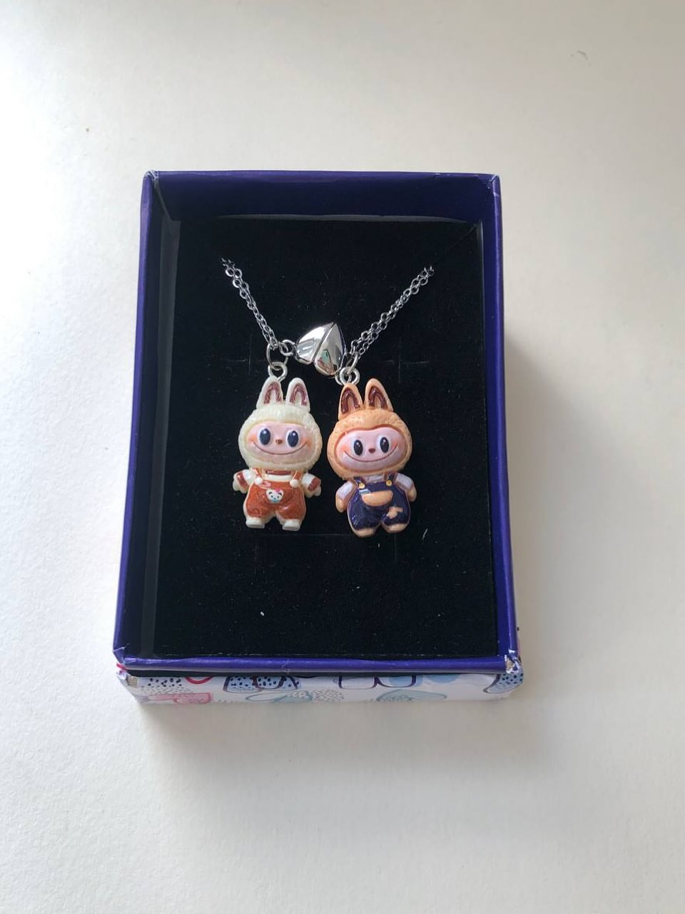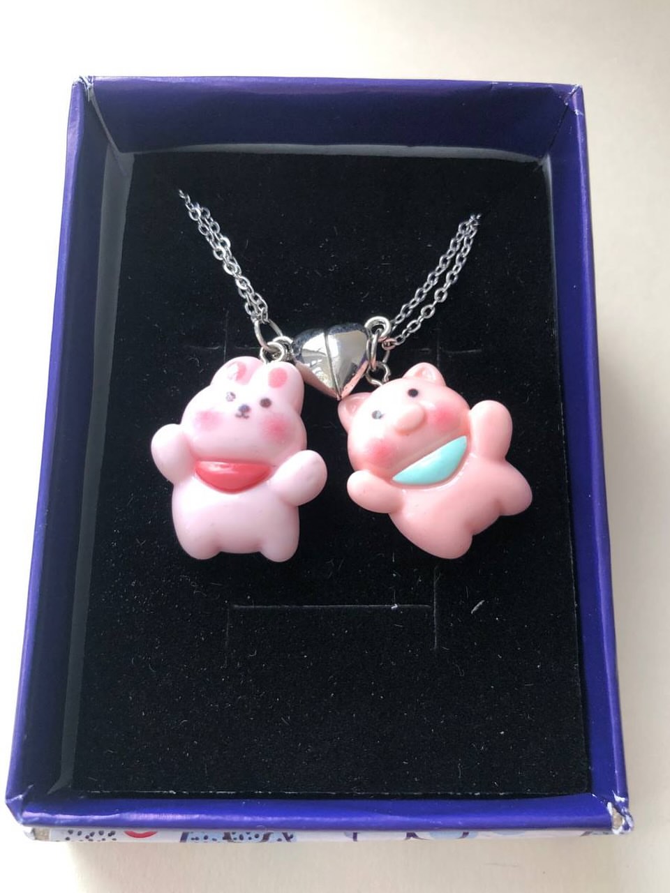 گردنبند کاپلی واسه دوستای جون جونی استیل رنگ ثابت هر بسته شامل 2 زنجیر و 2پلاک و یک قلب که هر زنجیر نصف قلب رو داره